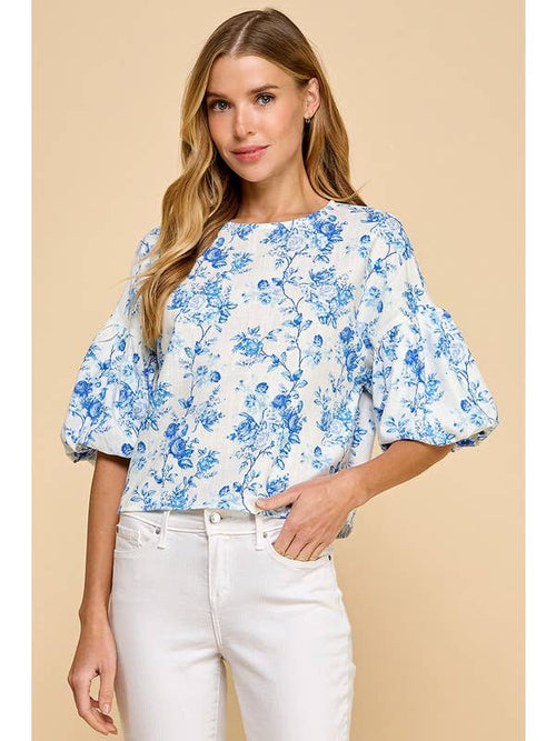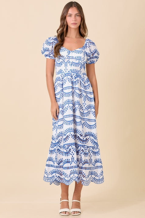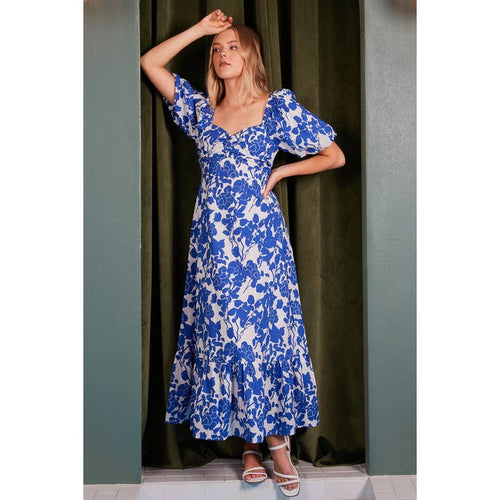 Blue Floral Puff Sleeve Maxi Dress